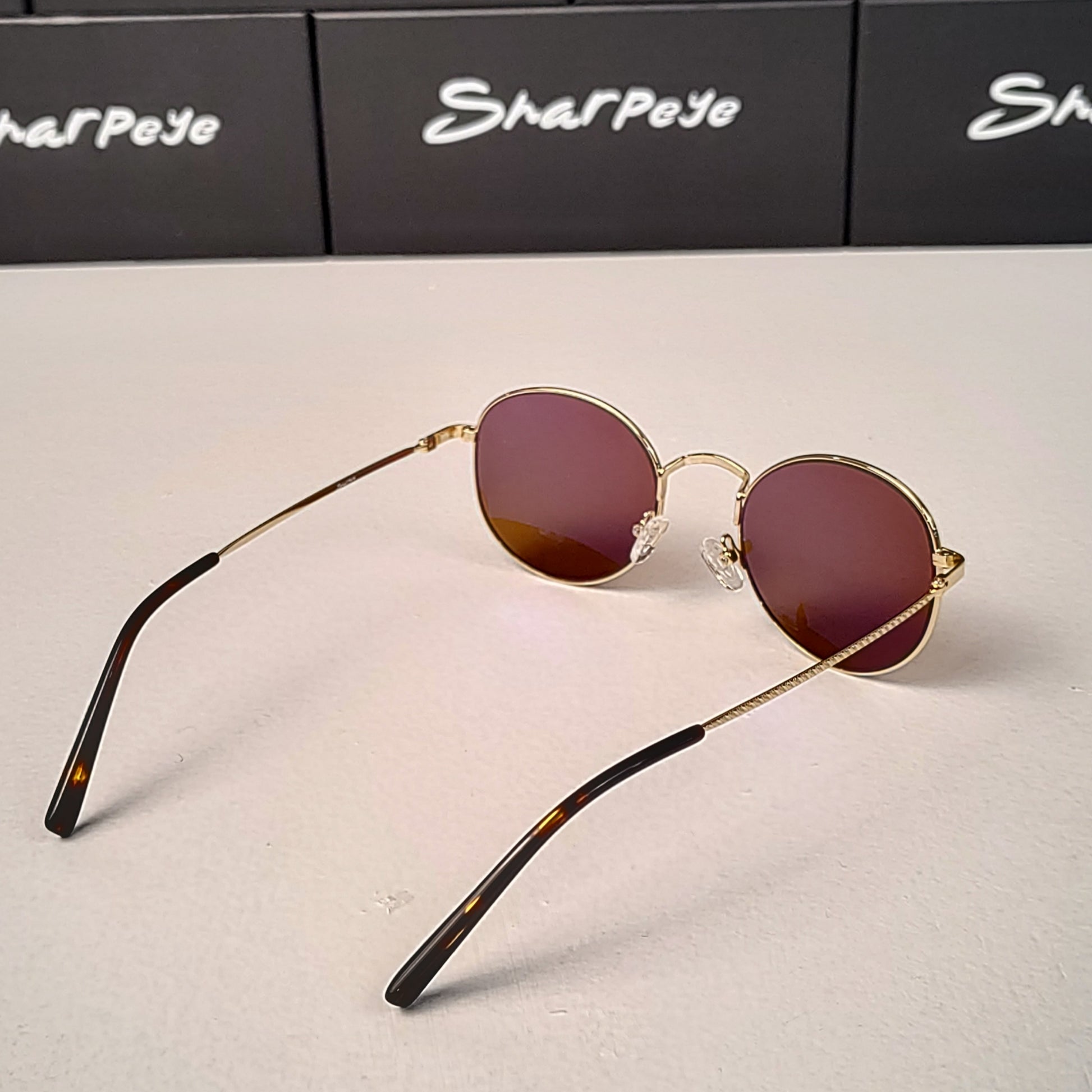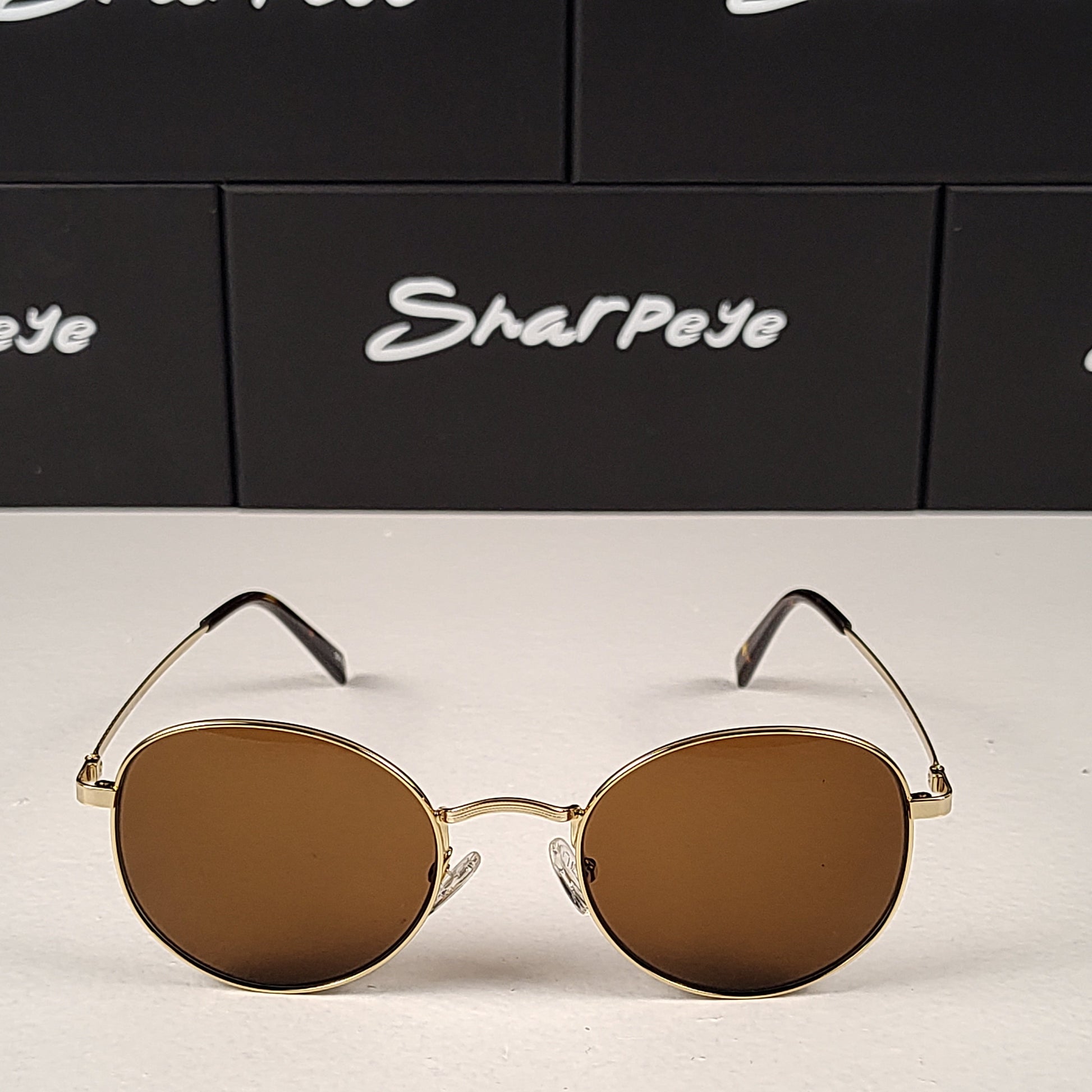 Sharpeye Shades Premium Sunglasses - Sleuth Gold. Round frame. Perfect for any outdoor activity, beach, park, biking, running, and poolside.